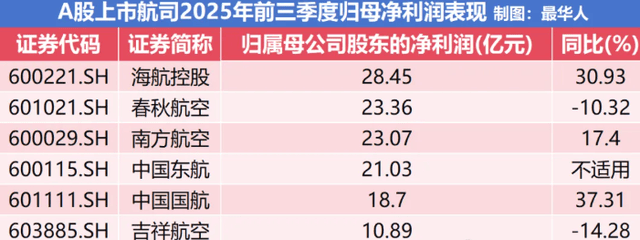 最终,海航从2020年吃亏687亿元的“吃亏大户”,到2025年前三季度28。45亿元的净利润,超越春秋航空23。36亿元的净利润,成为上市航司中的新晋“盈利王”。